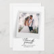 A great and thoughtful way to thank your friends, family, and coworkers who graced you their presence on your your wedding day with this modern photo thank you cards with script hand lettered "thank you" and a love heart.