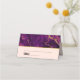 Place card with a beautiful abstract pattern featuring a marble design. Rich purple colors blending together combined with faux-gold swirling ribbons of color mixing and mingling throughout the design. A peach colored layer below the pattern with an elegant faux gold-foil strip between them.