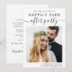 Modern and chic elopement or small wedding and reception save the date announcement featuring your photo and "Save The Date For Our Happily Ever After Party" in a mix of simple typography and a chic script with swashes. Under your photo, add your first names and reception/party date and location; on the reverse, personalize your wedding announcement and reception information in more detail.