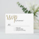 Modern stylish wedding response RSVP card done in white with large golden tan graphic script text reading rsvp, at the top, with the rest of the text in black. The back is done in a dark charcoal gray for a gold tone polka dot pattern. Personalize all the date field for your special day. Matching Love is in the Air wedding products are available.