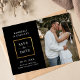 Elegant, Modern, Simple and Minimalist wedding save the date cards with PHOTO / picture. Faux gold foil frame with white text and black background. Perfect for any type or time of year wedding theme. All text, color and size are editable. See the 'KIMBERLY' collection for other items.