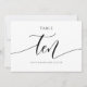 Flair Wedding Table Number 10 (Black): This trendy calligraphy table number card is set in rich black, but you can change it to any color you like just by changing your background color!. **HOW TO CHANGE THE DESIGN COLOR: Click the "Personalize" Button. 2) Click the "ClICK TO CUSTOMIZE FURTHER" link at the bottom. Then you will have the option to click on the number and choose a new fill color. If you change your design color, don't forget to change color on the back too : )