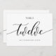 Flair Wedding Table Number 12 (Black): This trendy calligraphy table number card is set in rich black, but you can change it to any color you like just by changing your background color!. **HOW TO CHANGE THE DESIGN COLOR: Click the "Personalize" Button. 2) Click the "ClICK TO CUSTOMIZE FURTHER" link at the bottom. Then you will have the option to click on the number and choose a new fill color. If you change your design color, don't forget to change color on the back too : )
