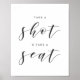 Custom-designed wedding seating table sign featuring "Take a Shot and Take a Seat" modern minimalist black and white design.