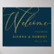 Wedding Welcome poster with modern FAUX gold foil script text. The word "welcome" is an IMAGE produced to look like it has a metallic foil finish, but it is printed in flat ink and cannot be edited. It can be resized to fit your poster size, and all other text can be fully edited. Pick your size (shown on 10 x 8) and customize the text, fonts, colors and layout. Recommended semi-gloss or premium gloss finish.
