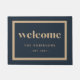 A great gift for newlyweds or new homeowners, our personalized welcome doormat in classic navy blue and tan features "welcome" in modern lettering, with your family name and year established beneath. A wide border completes the design.