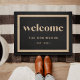 A great gift for newlyweds or new homeowners, our personalized welcome doormat in classic black and tan features "welcome" in modern lettering, with your family name and year established beneath. A wide border completes the design.