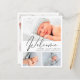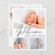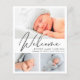A simple and elegant budget-friendly birth announcement featuring a 3 photo collage of your newborn overlayed with "Welcome" in a stylish modern script. Add your baby's name, birth date and birth stats. On the back, add another photo and a personalized message.