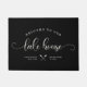 Modern, chic brush script reading WELCOME TO OUR LAKE HOUSE in a trendy typography driven design. Great custom lake house decor for your home away from home. Both romantic and stylish, our black door mat features a sweet canoe illustration between your location and the year established.