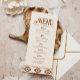 A modern western wedding menu featuring warm neutral tones and bold southwest-inspired patterns. Perfect for ranch, desert, or outdoor weddings with a semi-formal western feel.