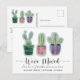 Let your friends and family know your new address with this modern 'Cactus' announcement postcard. This design features 3 potted cactus plants. Original artwork created for you using digital watercolor. The large 'Home Sweet Home' text creates a cool and overlay, contrasting uniquely with the artwork. Fully customizable text, very simple to edit with your personal details.