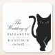 Modern Whimsical Black Cat Wedding Square Paper Coaster