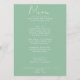 A colorful retro funky modern bright wedding dinner menu. Which features chic template design of boho vintage green background and white typography and hand written menu in white. Perfect and matching with the whole whimsical hand lettered suite vibe.