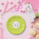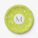 Modern Whimsical Curls Lime Green Monogram Paper Plates
