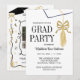 Modern Whimsical Gold Black Graduation Cap Invitation