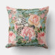Modern Whimsical Roses And Clocks Pattern Blue Throw Pillow
