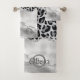 Modern White Agate Silver Monogram Leopard Print Bath Towel Set