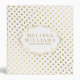 Elegant modern gold polka dots pattern over white background. Gold and white vintage frame on front for custom text. Part of gold polka dots collection.