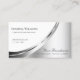 Very elegant white and silver colored business card design with a noble shimmery silver decor.