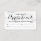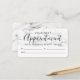 This is the perfect customer appointment business card for a trendy, stylish, girly, and modern lash artist, makeup artist, nail technician, and many more professions. This design features a white and black marble background with elegant handwritten script typography. It's modern, elegant, girly, unique, trendy, stylish, and cool; the perfect design to impress your customers.