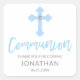 Modern White Blue Cross COMMUNION Boy Thank You Square Sticker