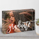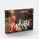 A stylish graduation photo block featuring a full senior portrait with Graduate in flowing white brushed script and the graduate's name and class year in coordinating type. The white script overlay creates a beautiful contrast against any photo, making this a versatile keepsake. Customize with a favorite portrait and details for a meaningful graduation gift.