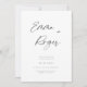 Plain white envelopes are included with paper invitations and will come to fit the invitation size you select. If you don’t need the envelopes, you may choose to not receive them by selecting the dropdown below "Envelopes" and choosing "None." If you’d like to have a design on your envelopes, you can browse all of these available envelopes to find the design that complements your Modern White Calligraphy Wedding Invitations.