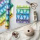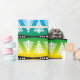 A cute,stylish and elegant white christmas trees pattern on rainbow colors background. Black stripes with white stars add a unique touch to the festive design with a modern graphic christmas trees pattern.