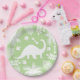 Cute modern white dinosaur brontosaurus silhouette and jungle foliage paper plates.