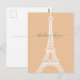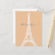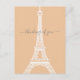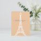 Modern minimalist style white Eiffel Tower silhouette graphic on peach background. Customizable "thinking of you" text