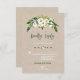 Unique and elegant card design featuring gorgeous white watercolour roses, peonies bouquet, a floral divider with arrows as hearts, modern handwriting "Kindly reply", on a burlap background. Use Customize tool to add your info, change fonts, background colour. For matching items, please, visit my Rustic White Floral Wood/Burlap Collection.