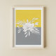 Modern and pretty wall art using Pantone 2021 color combo of Ultimate Gray and Illuminating as a background to an all white hand drawn floral illustration in center.