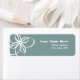 A modern floral address label featuring a white flower illustration at left over a blue background. Personalize the white text. Matching items in the "Weddings" category of Jill's Paperie.