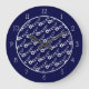 Modern white flower pattern and navy blue border wall clock. The focus of this design is the beautiful gray and white floral pattern and the border with the numbers.