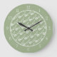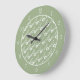 Modern white flower pattern sage green border large clock