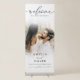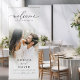 This distinctive wedding welcome banner highlights your cherished engagement photo, surrounded by a beautiful, elegant white gradient that exudes a soft, romantic ambiance. With sophisticated black typography and intricate handwritten script, this custom photo banner offers a modern yet timeless touch to your ceremony or reception entrance. Ideal for romantic, glamorous, minimalist, or contemporary weddings, it ensures a warm and memorable first impression for your guests.