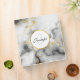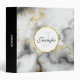 Modern White Gray Marble with Gold Ribbon Monogram 3 Ring Binder