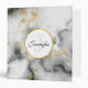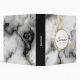 A binder with a classy, modern marbled pattern. White, black and smoky gray marble with thin ribbons of faux-gold swirls throughout the pattern.