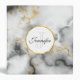 A white circle with a faux-gold frame layered over top with your monogram initial and name inside.