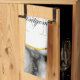 Modern White Gray Marble with Gold Ribbon Monogram Kitchen Towel