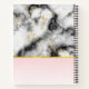 A spiral notebook with a classy, modern marbled pattern. White, black and smoky gray marble with thin ribbons of faux-gold swirls throughout the pattern.