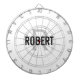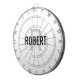 Modern white dart board with a black typography name and gray monogram. Personalize with name and initial.