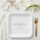 Decorate your wedding table with these Modern White Grey Script Monogram Wedding Paper Plates. Each is modern designed with a customizable white background. Large grey initial is on the center and bride and groom first names are in darker grey trendy hand lettered script. Established year date is on lower center. CLICK PERSONALIZE TEMPLATE OPTION AND FOLLOW PROMPTS.