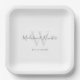 Modern White Grey Script Monogram Wedding Paper Plates