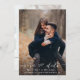 Pick the best pictures from your engagement shoot or your favorite pictures of the two of you for this perfect save the date. The words save the date are handwritten to give a personal feel to the card. The front has 1 image and the back has a large image with a white filter on top.