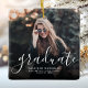 Celebrate the graduate with this modern custom photo graduation ornament, featuring the word "graduate" in white handwriting script, with the school and year of graduation below in white sans serif font. A black gradient overlay ensures that the white text will pop. Perfect for either high school or college graduation.