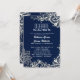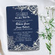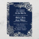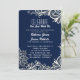 modern white lace pattern navy blue wedding invitation
