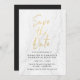Stylish modern wedding save the dates featuring a faux gold foil trendy script font, white marble background, and placeholders for your custom wedding information. The back of the save the date can be changed to a color of your choice with the Customize tool.