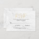 Stylish and trendy Modern White Marble and Gold Script RSVP enclosure cards.