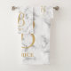 Modern white marble gold typography name monogram bath towel set